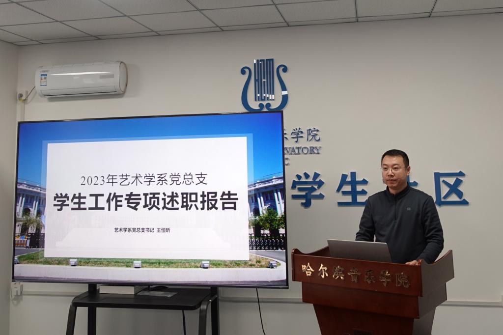 管弦系党总支书记杨玲、民乐钢琴联合党总支书记张冰、艺术学系党总支书记王恒昕对2023年学生工作进行梳理总结,围绕履行岗位职责、执行与抓落实、推进重点工作等情况进行述职,并对学生工作成绩亮点,特色品牌等进行了展示汇报,对目前工作存在的问题与不足提出下一步工作计划与举措。