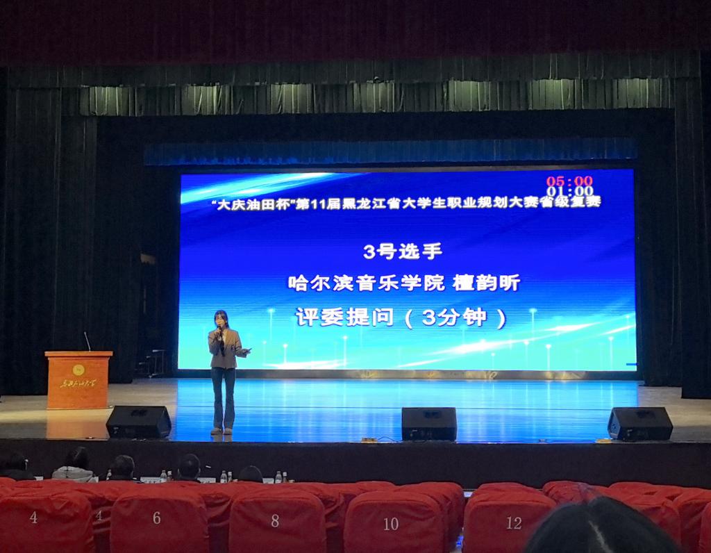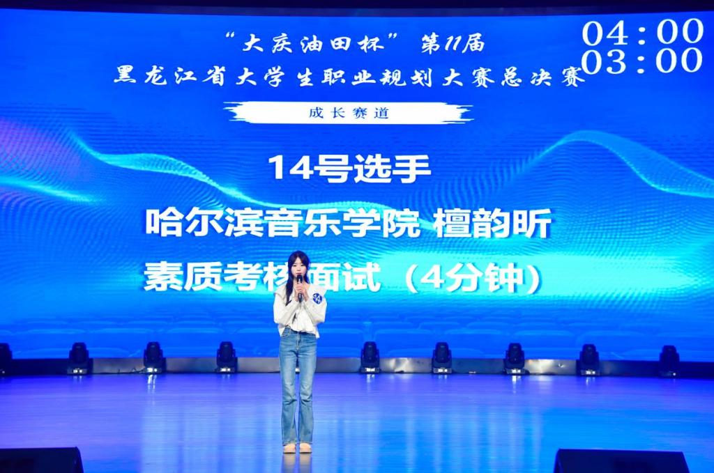 本次大赛以“规划未来 扎根龙江 求实奉献 逐梦青春”为主题,自去年10月启动以来,全省共有78所高校29.6万名在校学生报名,1056人参加省级初赛,276人入围省级复赛,36所高校、70名学生晋级省级决赛。经大赛组委会选拔,学院艺术学系2023级博士研究生楚钧、艺术学系2021级本科生檀韵昕入围省级复赛。经过省级复赛选拔,檀韵昕最终入围省级决赛。檀韵昕同学以“制龙江之乐 传华夏之声”为主题进行生涯发展展示,以优秀的综合能力、扎实的专业学识,展现了哈音学子的高素质、高水平、高能力。