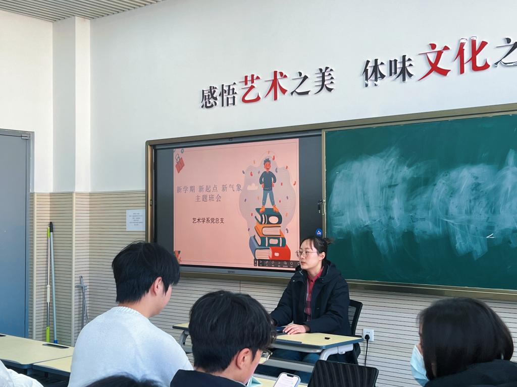 3月19日,艺术学系党总支在主楼323教室开展“新学期、新起点、新气象”主题班会,班会由艺术学系辅导员郭宏月主持,艺术学系学生参加。