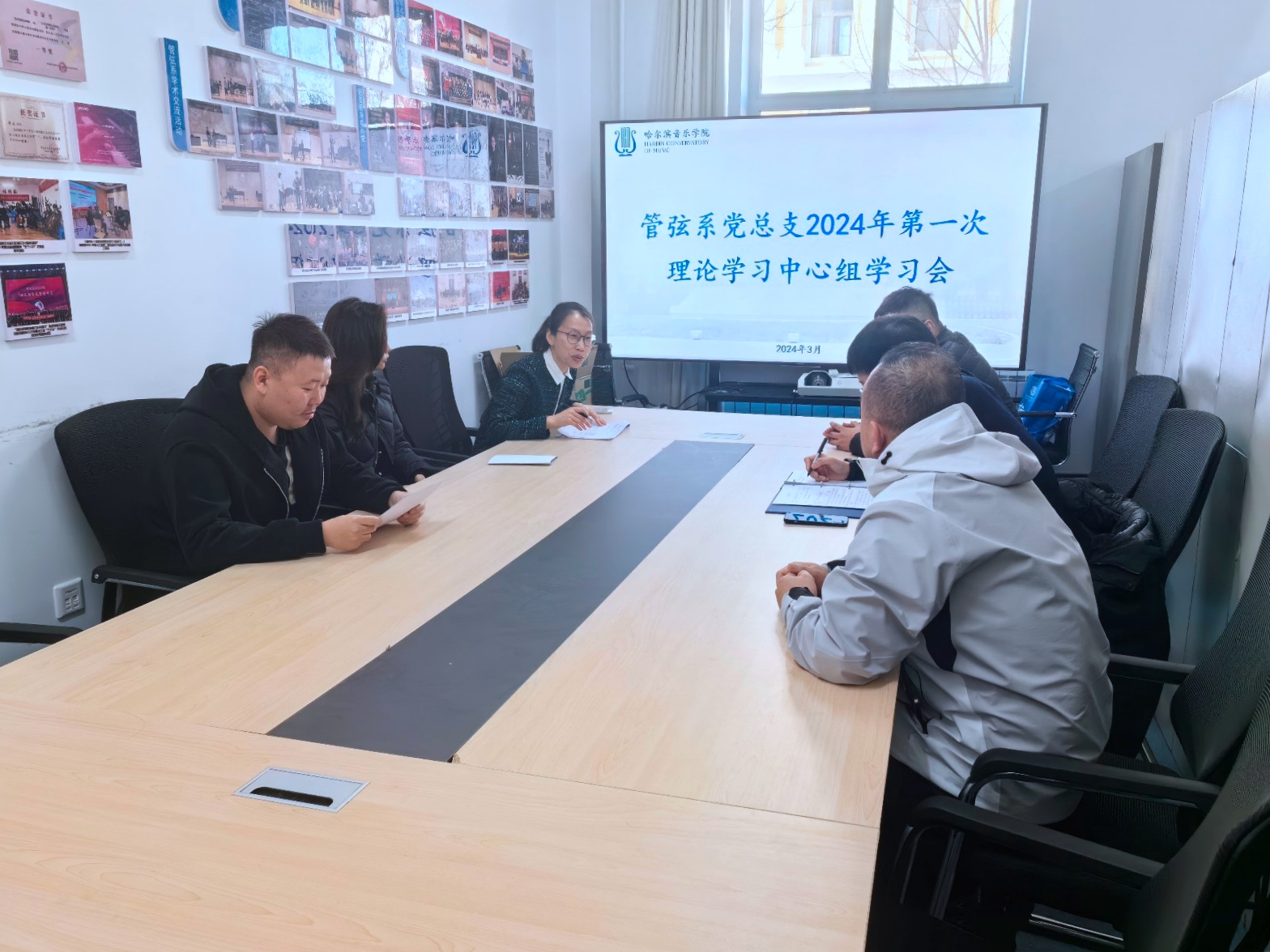 3月25日上午,管弦系党总支在致乐公寓103会议室召开2024年第一次理论学习中心组学习会,管弦系党总支理论学习中心组全体成员参加学习会,会议由管弦系党总支书记杨玲主持。