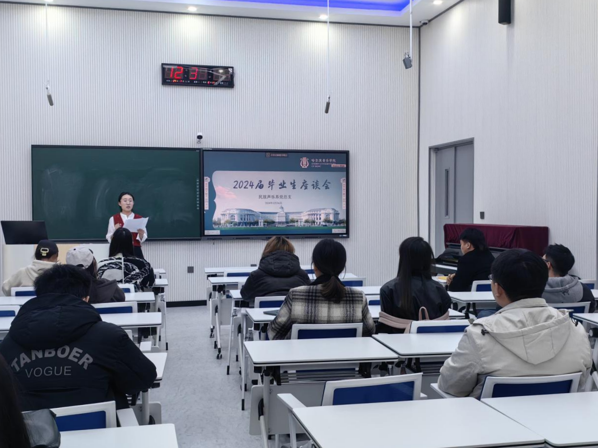 3月26日,民族声乐系党总支在主楼A104召开2024届毕业生就业座谈会,民族声乐系2020级本科生和2021级硕士研究生参会。座谈会由民族声乐系党总支辅导员吴冰冰老师主持。