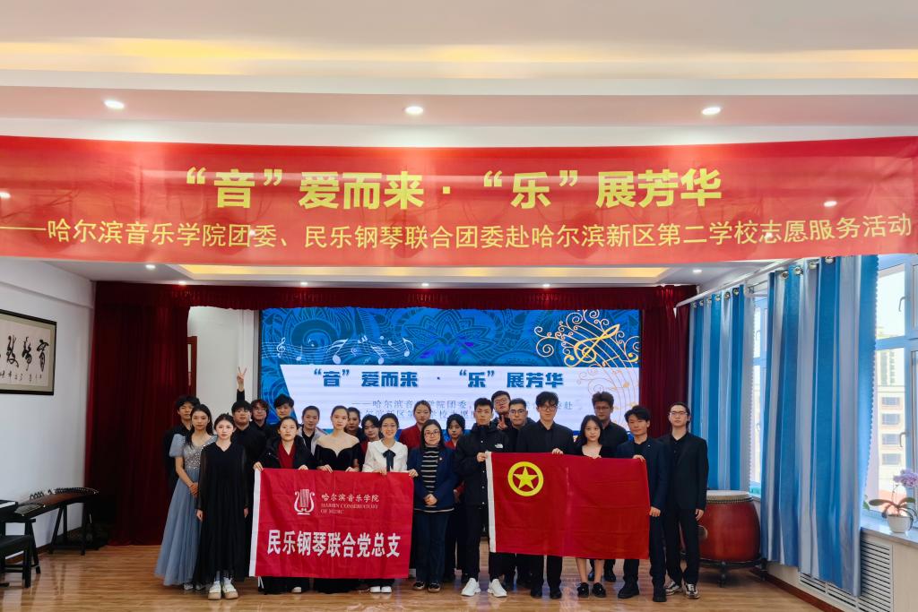 为深入学习宣传贯彻习近平总书记对深入开展学雷锋活动的重要指示精神,深刻把握雷锋精神的时代内涵,3月28日,学院团委主办、民乐钢琴联合团委承办“音”爱而来·“乐”展芳华志愿服务活动,民乐钢琴联合团委的师生们在辅导员、团委书记王丹阳的带领下,走进哈尔滨新区第二学校,将高雅艺术和音乐盛宴带进了校园。