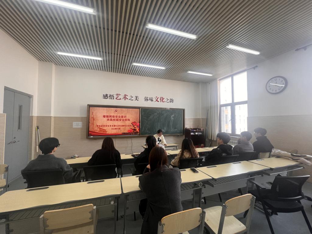 为进一步丰富党支部活动,增强党支部内党员国家安全意识,响应学院党日活动开展要求,4月10日,艺术学系学生党支部在主楼324教室开展以“增强网络安全意识,共筑校园安全防线”为主题的党日活动。此次活动由艺术学系学生党支部书记、艺术学系辅导员郭宏月主持,党支部全体党员参加。