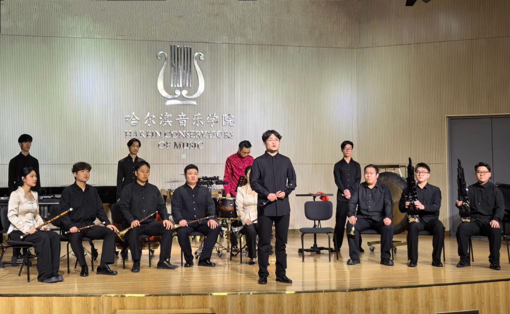 学院不断发挥音乐专业优势,围绕“音乐+思政”,将国家安全教育与音乐艺术相结合,打造富有音乐学院特色的系列品牌宣传教育活动。4月12日,黑龙江省“国家安全·青春挺膺”主题示范团日活动由学院承办,学院交响乐团演奏红色经典歌曲,聚焦总体国家安全观生动实践,带领青年学生在昂扬的音乐中重温先烈捍卫民族尊严、保卫祖国安全的斗争精神;结合学院校园开放日及“午间音乐会”艺术实践品牌,与省直政法机关联手共同唱响维护国家安全主旋律;在“红色旋律”音乐党建系列品牌活动上,同学们把表演与理论宣讲相融合,进一步提升对国家安全的重视。学院网络思政品牌“聆听高雅”推荐学院原创音乐作品《守梦人》,作品展现了边防战士内心的情感与坚守,颂扬了他们无私奉献的崇高精神,鼓励同学们将个人发展与国家、民族的命运紧密相连,自觉践行维护国家安全的青春使命。