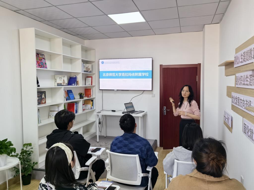 会上,北京师范大学克拉玛依附属学校的工作人员通过播放视频资料、演示电子文稿等方式详细介绍了北京师范大学克拉玛依附属学校的办学规模、岗位需求、工作环境、招聘待遇、岗位发展等情况,为学院毕业生提供高对口度的音乐教师岗位类型,并对学生关注的问题进行答疑。