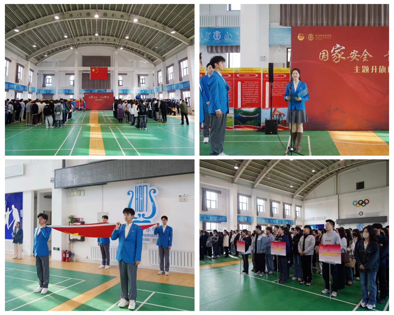 在4月15日第九个全民国家安全教育日到来之际,学院举行主题为“国家安全青春挺膺”的升旗仪式。民族声乐系2021级本科生周璇作为学生代表在国旗下发表演讲,号召青年学生要奋楫笃行,矢志向学,敢于胜利,用实际行动践行“国家安全,人人有责”的理念。