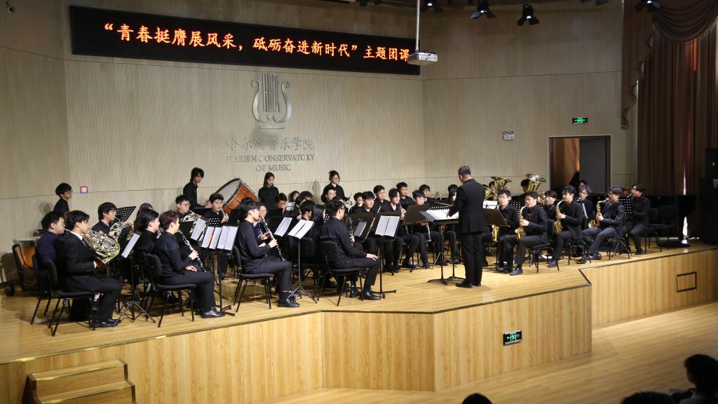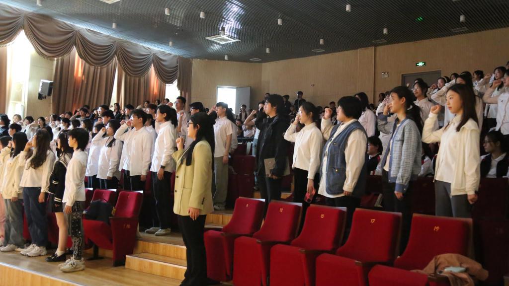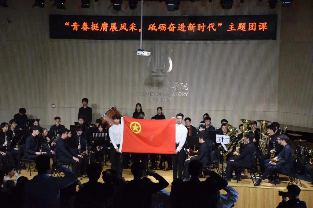 团课内容结合学院音乐专业优势,依托学院管弦系管乐团,通过《走向复兴》《不忘初心》等音乐作品带领新老团员重温奋进道路上的使命初心。团课上,党团员代表重温入团誓词,团员们整齐列队,神情庄重。在鲜艳的团旗面前,他们高举右拳,庄重宣誓:“我志愿加入中国共产主义青年团,坚决拥护中国共产党的领导……为共产主义事业而奋斗!”铮铮誓言响彻全场,表达了团员们对共青团组织的无限忠诚和为共产主义事业奋斗的坚定决心,也进一步增强了团员们的责任感和使命感。
