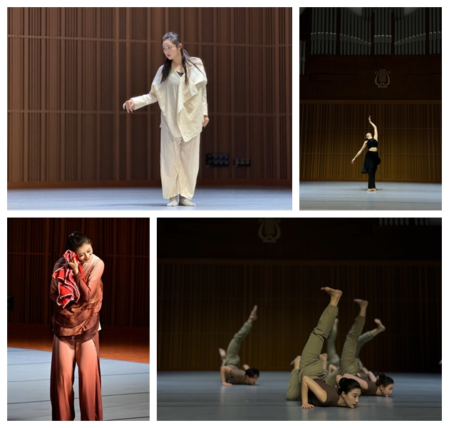 演出中,舞者们表演了《一直游到海水变蓝》《舞秧歌的她》《降E调的鹅》《涓涓》《呐喊》等师生原创作品,呈现出精巧灵动、细腻流畅、恢宏大气、情感丰富的艺术特征,彰显了舞蹈艺术的本体魅力,表现了新时代舞者的执着追求,是一场舞蹈艺术的视听盛宴。