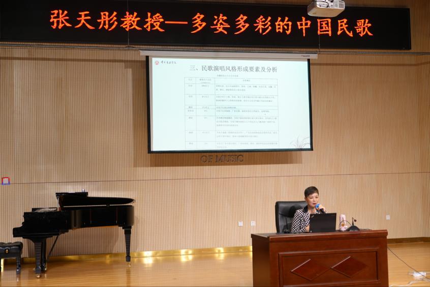 5月20日下午,由科研处(艺术实践处)主办,民族声乐系、黑龙江省艺术文化研究学术交流基地承办的“哈音讲坛”第四十三期在学院A219演奏厅成功举办。活动邀请中国音乐学院教授、博士生导师张天彤以《多姿多彩的中国民歌》开展专题讲座,吸引了众多学院师生及音乐爱好者参加。