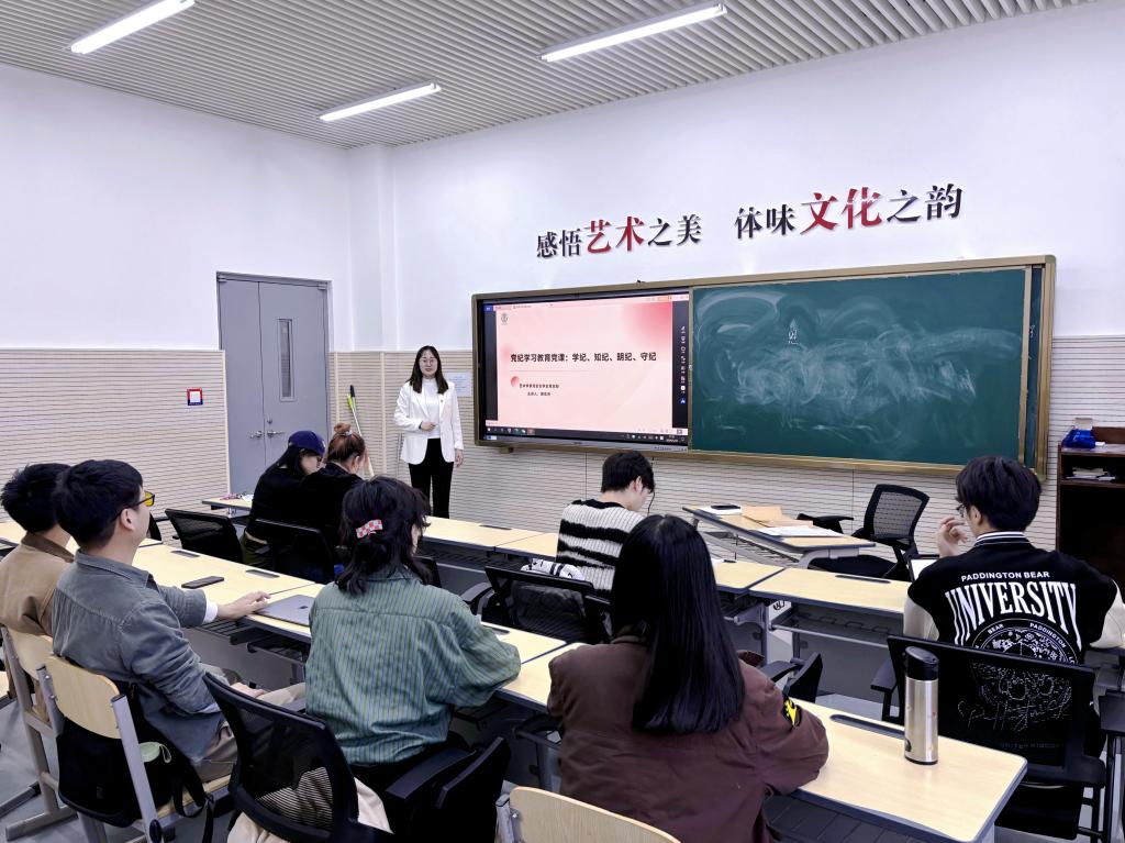 5月22日,艺术学系党总支学生党支部以“学党纪、明规矩、强党性”为主题开展党纪学习教育主题党日活动的教育党课。艺术学系辅导员郭宏月主持活动,艺术学系党总支学生党支部全体学生党员参加活动。