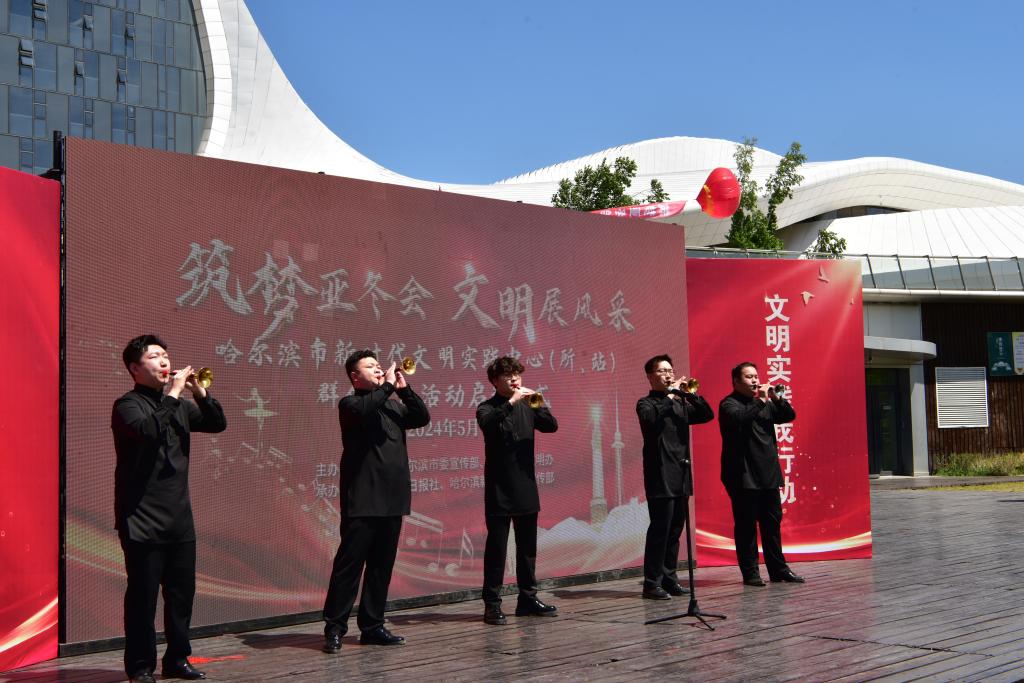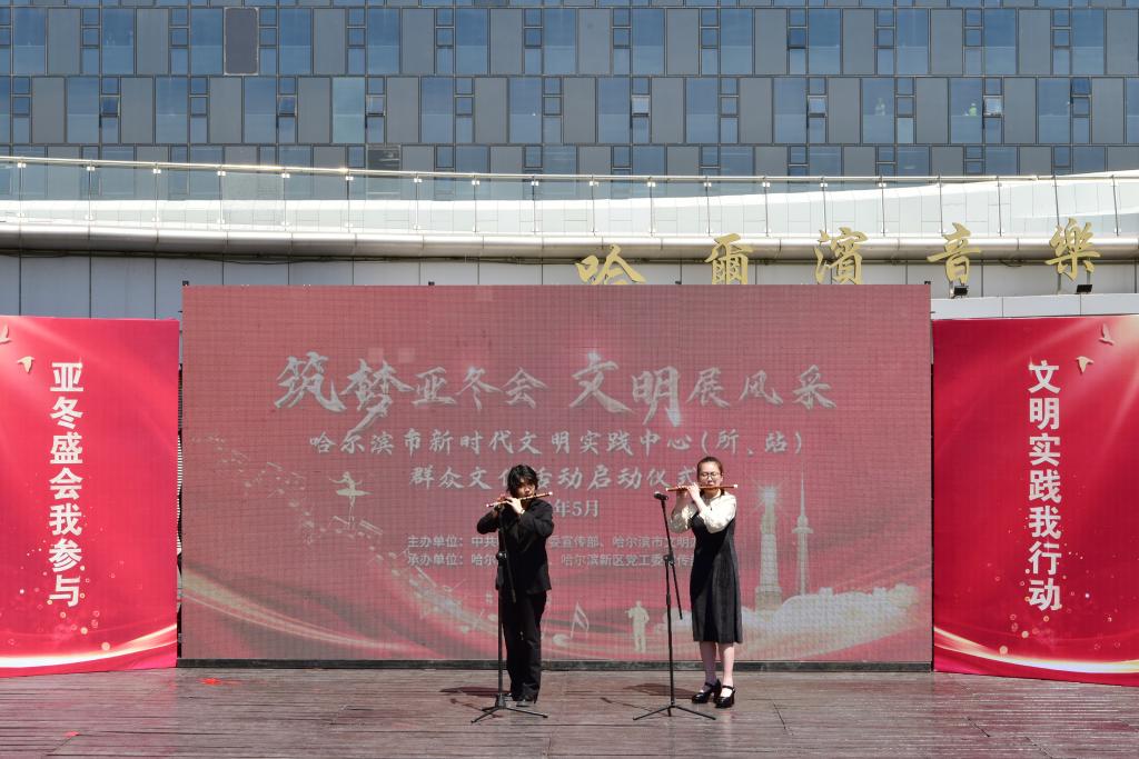 5月23日,由哈尔滨市委宣传部、市文明办主办的“筑梦亚冬会 文明展风采”哈尔滨市新时代文明实践中心(所、站)群众文化活动启动仪式在哈尔滨音乐博物馆举行,学院民乐钢琴联合团委“国乐暖民心”志愿服务队20名志愿者参演启动仪式,与全市200余名新时代文明实践工作者、志愿者、居民代表欢聚一堂,以志愿服务展现哈音风采,以文明之力献礼亚冬盛会。