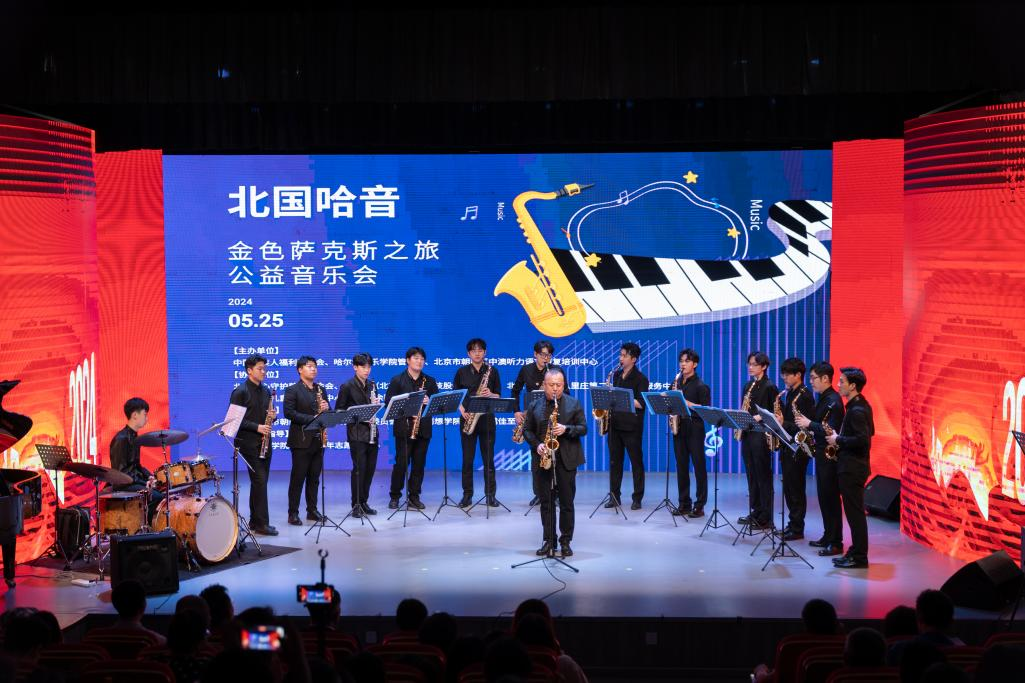 在音乐的殿堂里,每一个音符都承载着情感与故事。音乐会的主题是“心灵和鸣”,寓意着通过音乐的力量,跨越语言的障碍,连接每一个心灵。在这个特殊的舞台上,哈音管弦系师生与儿童共同演绎了一场别开生面的音乐会。“合和”萨克斯乐团为观众带来了《瑶族舞曲》《红色的童谣》等精选音乐作品,涵盖了古典与流行等多种风格,每一首曲目都经过精心挑选和排练,展现了乐团成员们精湛的技艺和饱满的热情,使观众仿佛置身于音乐的海洋中。