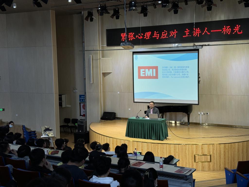 5月29日上午,管弦系副主任杨光教授在主楼A220举办了“青师讲堂·舞台表演中的紧张心理与应对”专题讲座,帮助学生探索和分析器乐演奏者表演时的紧张心理现象,研究和解决制约表演水平发挥的成因,并在专业学习中加以正确引导,进而在掌控演奏状态的基础之上来更完美的诠释音乐作品。
