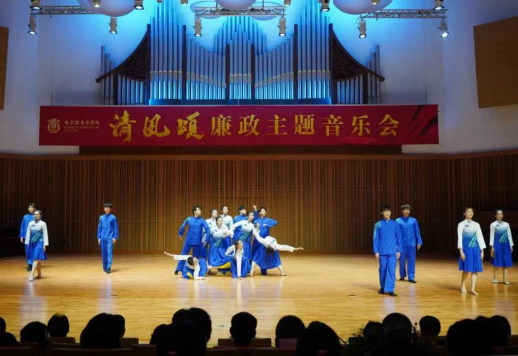 5月24日,管弦系青年师生在学院“清风颂”廉政主题音乐会上表演《前人的足迹》《红旗颂》等经典舞蹈音乐作品。