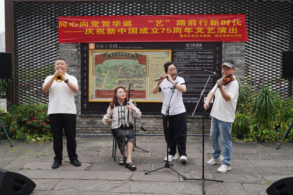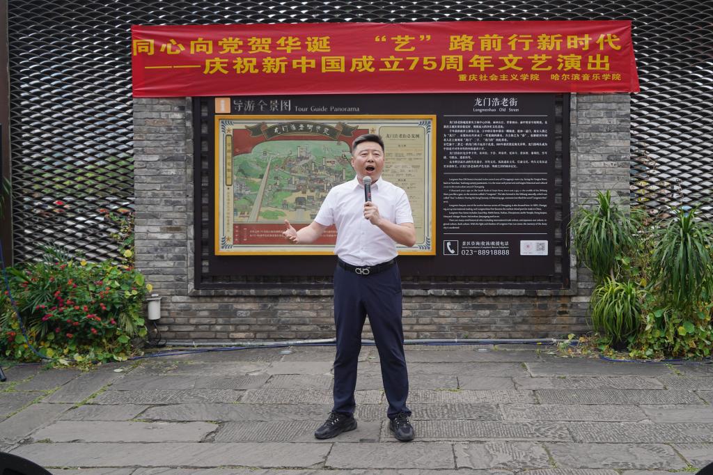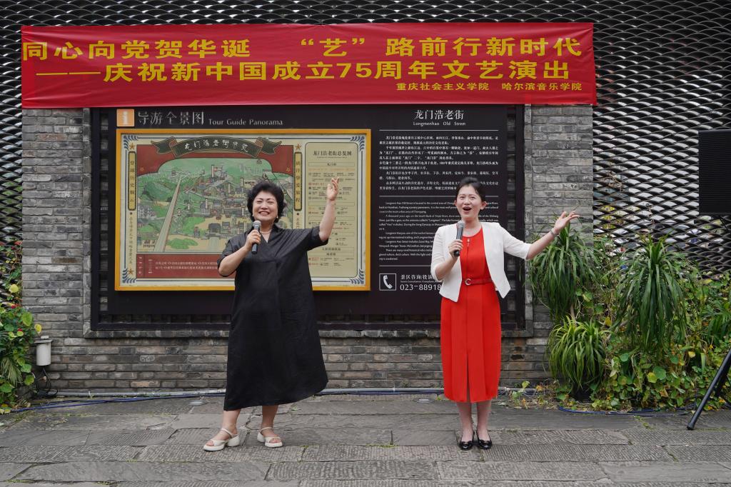 为庆祝新中国成立75周年及人民政协成立75周年,学院与重庆社会主义学院以“同心向党贺华诞 ‘艺’路前行新时代”为主题,联合举办了一场别开生面的音乐会。参训学员演唱了《我爱你中国》《红梅赞》等红色歌曲,展现了学院统战成员坚持中国共产党的领导,凝心聚力团结奋进的决心;《哈尔滨之夏》《我在黑龙江等你》等来自龙江大地的经典曲目,描绘了黑龙江独特的美丽风光,感染了现场的听众。