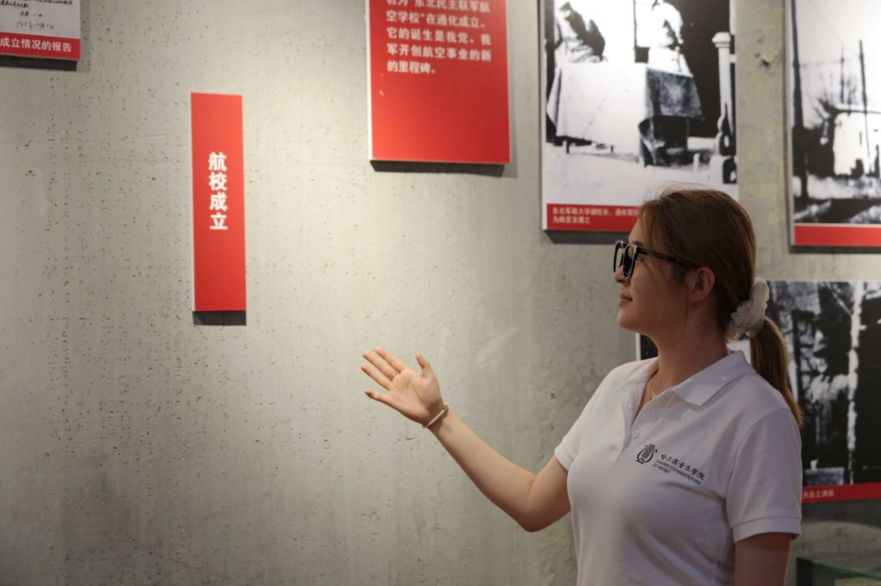 在参观过程中,大家认真聆听民族声乐系“星火”宣讲团成员孙悦的讲解,通过一幅幅珍贵的历史图片、一件件饱含故事的实物,深入了解了东北老航校的奋斗历程。此次参观活动不仅是一次历史的回顾,更是对红色经典文化、航空精神的传承与弘扬,激励着大家向前辈们团结奋斗、勇于创新的精神学习,为传承和弘扬红色精神贡献更多力量。