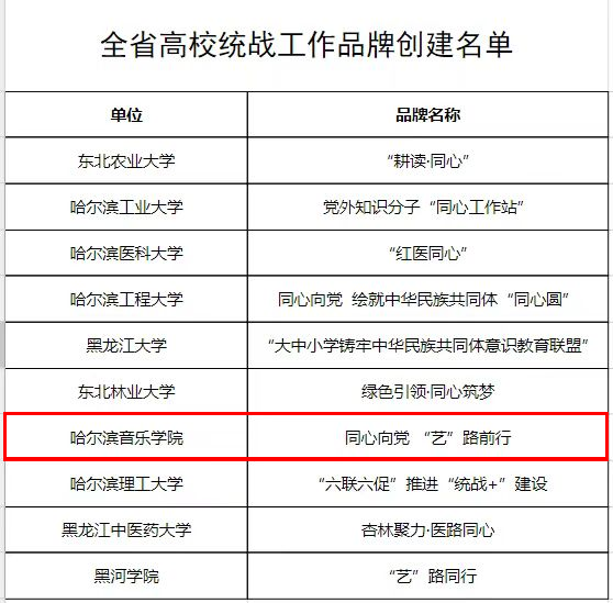 近日,省委教育工委首批黑龙江省高校统战工作品牌创建名单揭晓。学院“同心向党,‘艺’路前行”统战工作品牌成功入选。