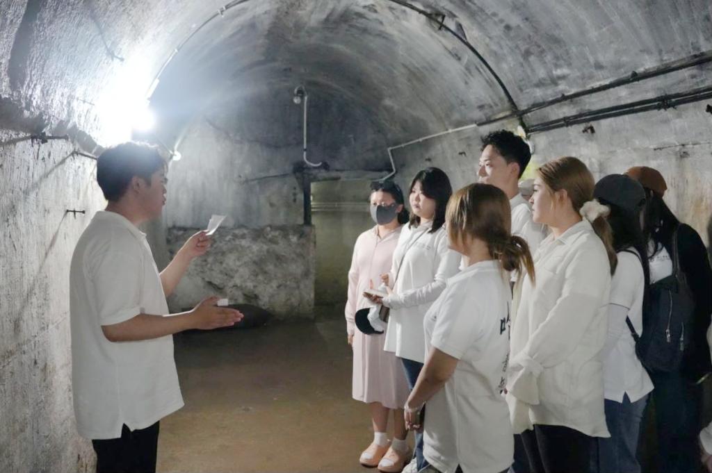 同学们进入地下要塞后,在宣讲团成员曲疏桐的引领下,大家依次参观了要塞的各个区域,包括地下工事、指挥所、弹药库等。透过那些保存至今的坚固工事和陈旧设施,仿佛能够看到当年战争的残酷与激烈,生动地展现了中国人民在抗日战争中不屈不挠的英勇斗争精神,让同学们深刻体会到了和平的来之不易。