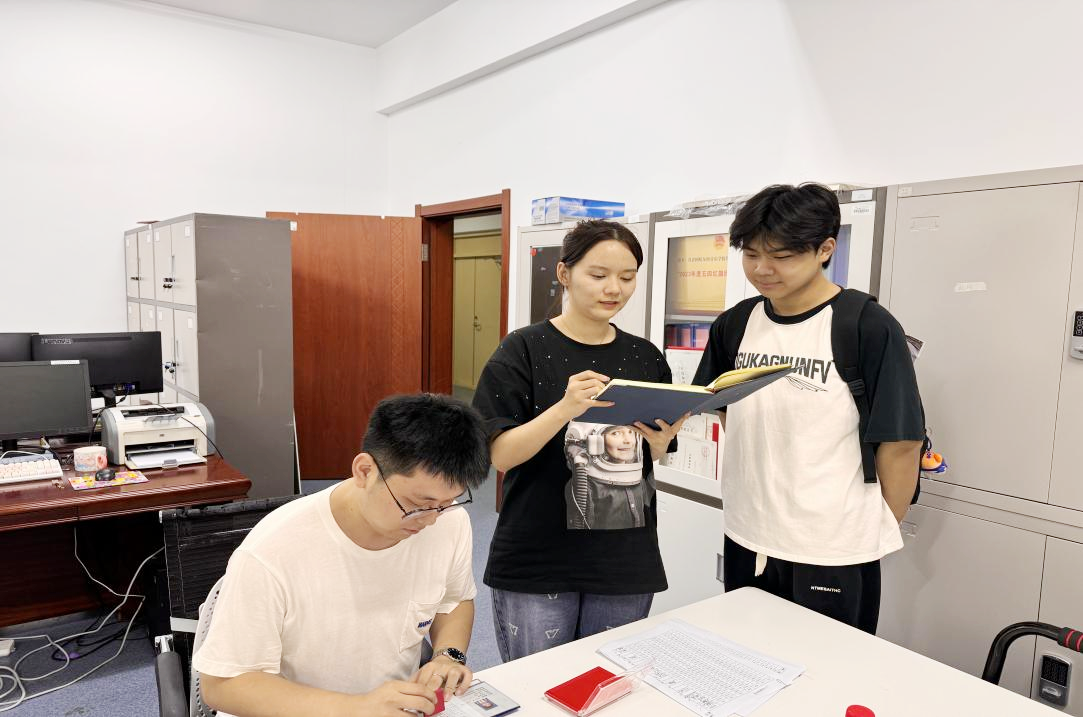在各党总支报到现场,同学们手持学生证进行注册验讫,辅导员老师与同学们深入交流假期见闻,畅谈新学期的规划。