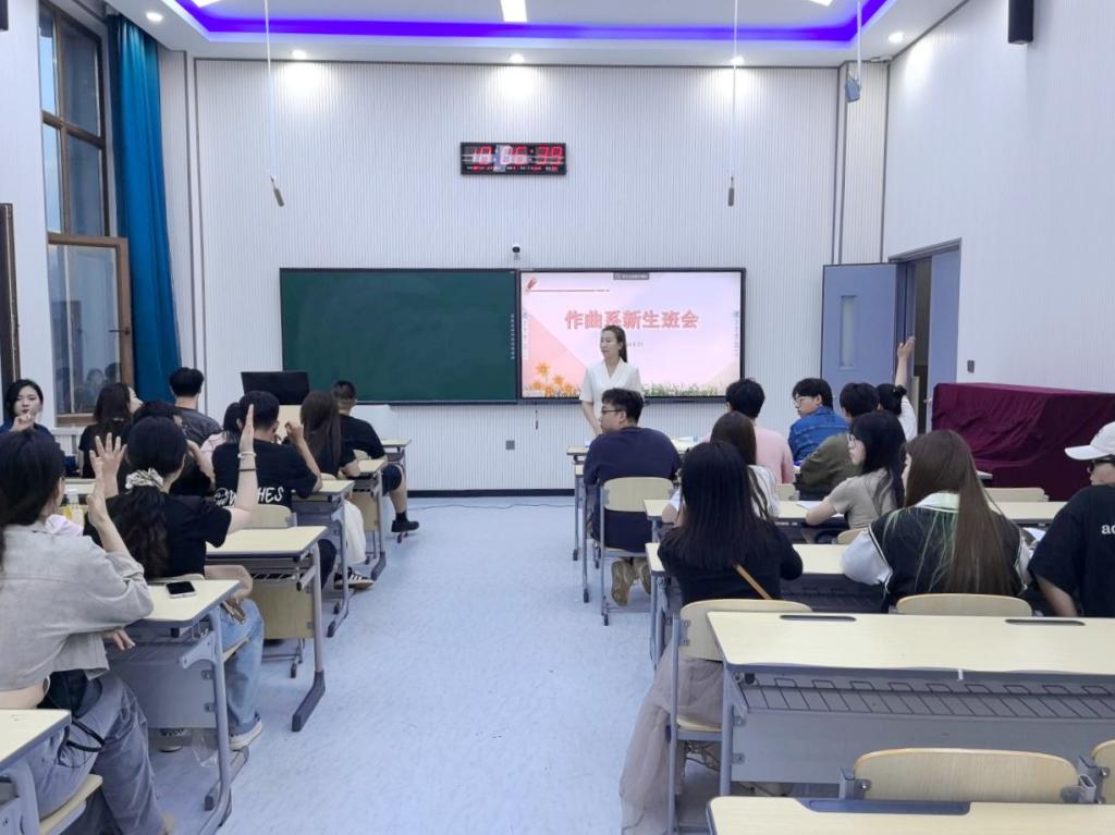为帮助2024级新生适应新环境,增进同学间相互了解,明确学习方向,提升班级凝聚力与集体荣誉感,作曲系党总支于8月31日晚在主楼102教室召开新生班会,辅导员夏雨欣主持会议,2024级本硕博全体新生参加。