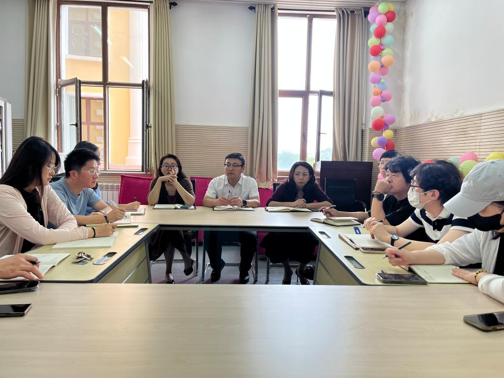 音乐学系主任王岩对本学期的重点工作任务进行了传达和布置,并对新入职专业教师开展了职业生涯规划指导,引导新入职教师统筹分配好教学科研等各项工作的时间和精力,要求教研室主任和资深教师发挥好传帮带作用,积极帮助新入职教师尽快熟悉环境,适应工作,进入角色,认真完学院和党总支成交办的各项任务,群策群力做好系内各项工作。并祝愿全体新入职教师在音乐学系工作顺利、生活愉快。
