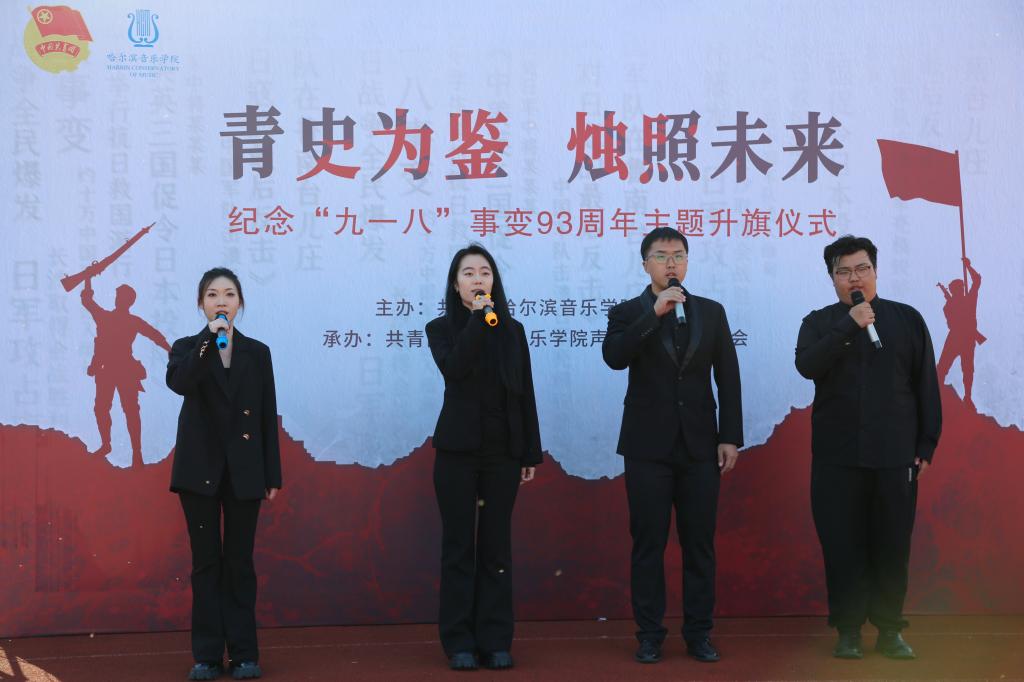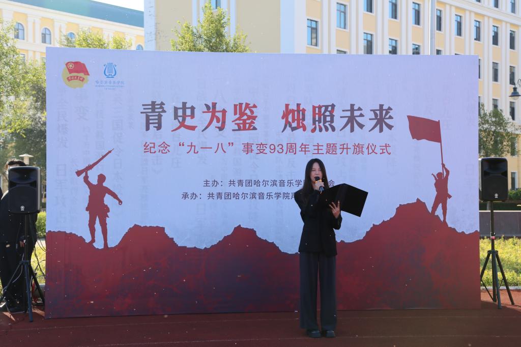 为深入学习宣传贯彻党的二十届三中全会精神,进一步加强对青年学生的爱国主义教育,增强学生的国家意识、民族意识、历史意识,9月18日,由学院团委主办、声乐歌剧系团委承办的纪念“九·一八”事变93周年“青史为鉴,烛照未来”主题升旗仪式在体育场举行。学院党委副书记、工会主席刘东兴出席仪式。声乐歌剧系党总支书记刘硕龙,声乐歌剧系全体本科生,2024级全体本科生及全体团干部300余人参加仪式。