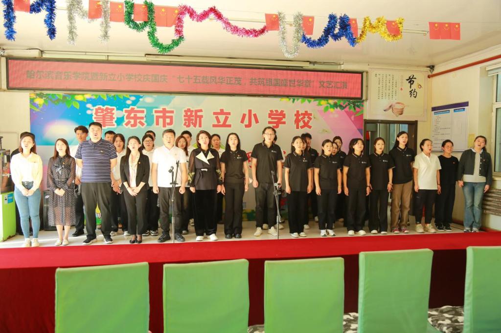 为庆祝中华人民共和国成立75周年,9月18日,声乐歌剧系党总支全体师生党员赴肇东市新立小学校开展主题党日活动。学院党委委员、宣传统战部(党委教师工作部)部长丁健,学院党委组织部正处级组织员、机关党总支书记那国光,团委书记于博瀛,声乐歌剧系党总支书记刘硕龙和声乐歌剧系党总支全体师生党员参加了主题党日活动。