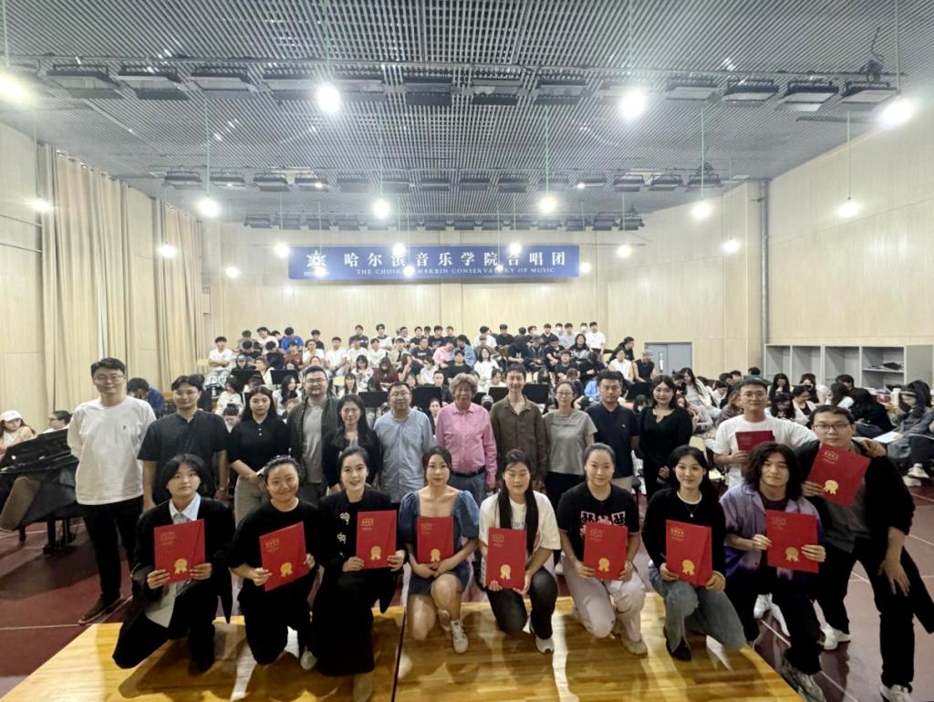 仪式的最后,声乐歌剧系为退团成员颁发荣誉证书。全体合唱团成员一起合影留念。