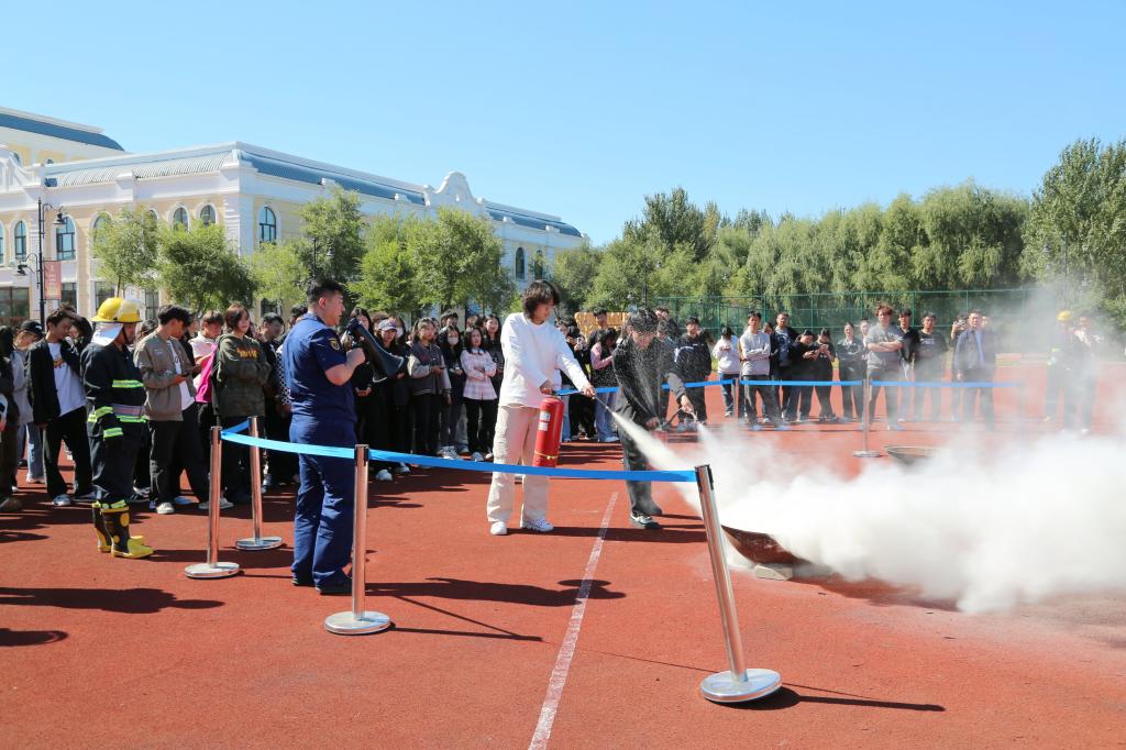 讲座结束后,在消防队员的指导下,学生们亲自上阵,体验了使用灭火器扑灭火源的整个过程,极大地增强了学生的应急处理能力和实战经验,让安全知识真正内化于心、外化于行。
