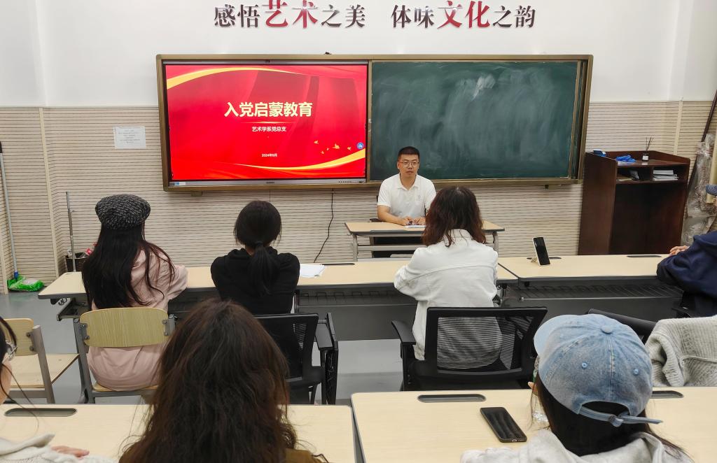 为进一步引导和帮助新生了解党的基本知识、历史使命和入党程序,端正入党动机,树立正确的世界观、人生观和价值观,在大学期间积极追求进步,艺术学系党总支于9月19日晚在主楼323教室召开新生入党启蒙教育讲座。艺术学系辅导员牟迪主讲,2024级本科、硕士研究生参加。