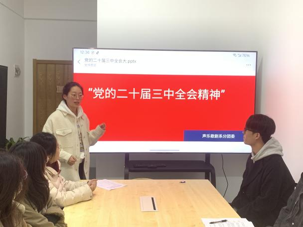 10月16日,声乐歌剧系团委在崇德公寓118会议室开展“党的二十届三中全会精神”专题学习研讨会,声乐歌剧系团委书记刘硕带领团员交流研讨,帮助同学们深刻理解全面深化改革的重大意义和目标任务,厚植爱国主义情怀。