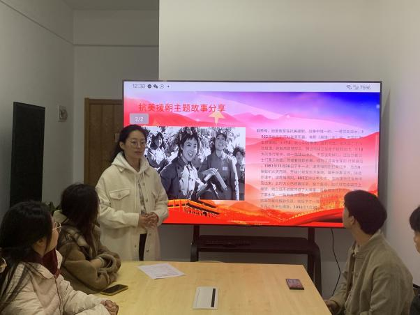 10月23日,声乐歌剧系团委在崇德公寓118会议室开展“传承红色基因 厚植爱国情怀”主题教育活动,2022级本科班冯露同学通过历史影像资料分享了抗美援朝英雄解秀梅的事迹。同学们纷纷表示,将铭记这段历史,传承抗美援朝精神,在新时代为实现中华民族伟大复兴的中国梦贡献自己的力量。
