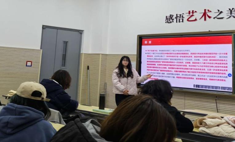10月11日,艺术学系团委在主楼A324教室开展“党的二十届三中全会精神”专题学习会,由2024级本科团支书王子恒主持。通过领学全会精神、学习心得分享、自由讨论三个环节,参会同学进一步加深了对党的二十届三中全会精神的理解,增强了同学们推动学校发展、服务广大同学的责任感和使命感。