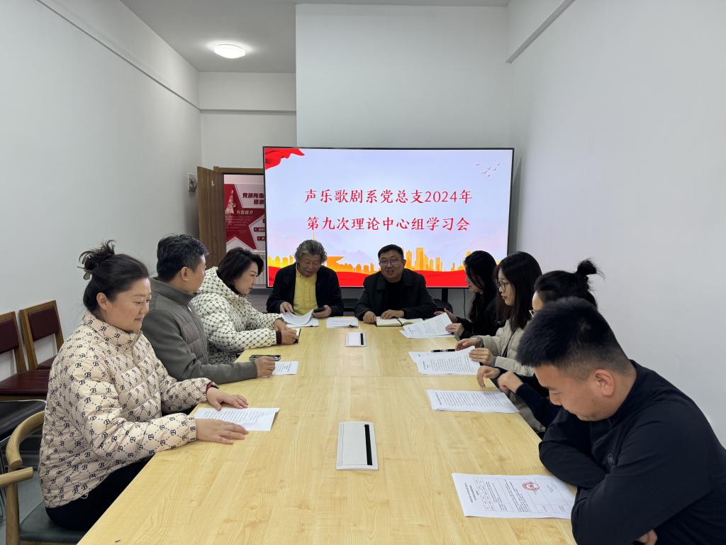 为学习贯彻全国教育大会精神及文艺工作座谈会讲话精神,声乐歌剧系党总支理论学习中心组于10月23日在崇德公寓118声乐歌剧系会议室召开理论学习中心组学习会。会议由声乐歌剧系党总支书记刘硕龙主持,理论中心组全体成员参会。