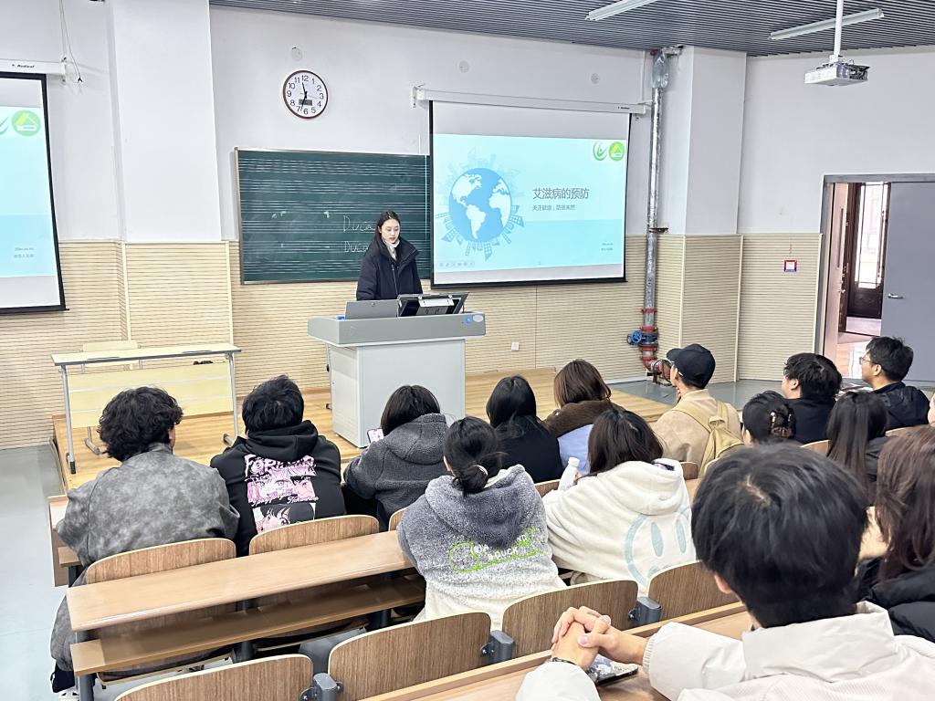 吕曼佳围绕“预防艾滋病病毒感染”,通过视频展示、交流互动等方式进行有关艾滋病与艾滋病病毒知识的科学讲解,同学们积极分享交流,让同学们了解到艾滋病的危害。