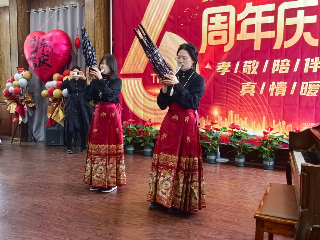 活动中,学生身着民族特色服饰,为老人们带来节奏明快的民族歌曲《欢乐的泼水节》,还演奏了钢琴曲《我的祖国》、扬琴独奏《瑶山夜画》、唢呐演奏《百鸟朝凤》等节目,赢得了阵阵掌声。