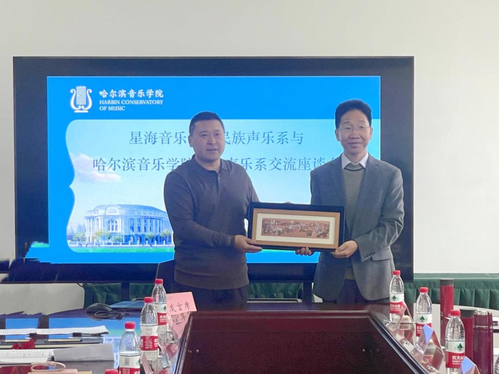 李天池感谢哈音的热情接待,并介绍了星海音乐学院民族声乐系建系精神、教育方针、学科专业建设以及课程建设等情况。他表示,希望能与哈音民声系的教育理念、人才培养产生共鸣,增进两个学院、两个系的交流与合作。