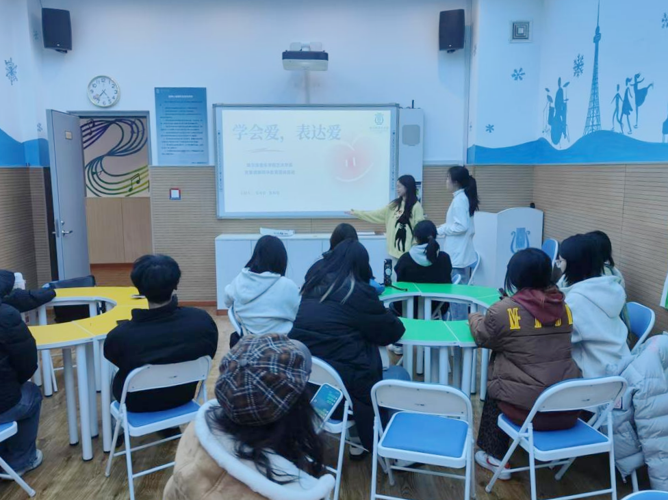 吴可卓围绕“学会爱,表达爱”,通过图片展示,问答互动等方式与同学进行交流。同学们积极表达自己的想法,提升了自己对于“爱”的认知。