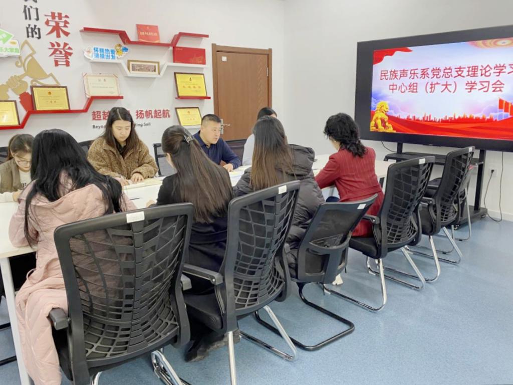 为学习贯彻习近平总书记给“银龄行动”老年志愿者代表重要回信精神,深入学习习近平同志《论教育》和习近平总书记在全国教育大会上的重要讲话精神,11月11日,民族声乐系党总支理论学习中心组在A102会议室召开了第九次(扩大)学习会。会议由党总支书记杨琳擘主持,中心组成员、师生党支部书记、教研室主任及部分师生党员参会。