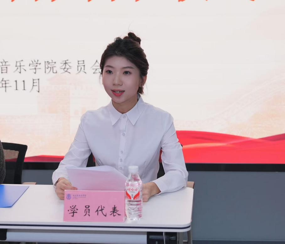 民乐系2023级硕士研究生李若童代表全体学员发言。她表示,将珍惜这次学习机会,认真学习马克思主义理论,积极参与实践活动,努力提高自己的思想政治素质和业务能力。