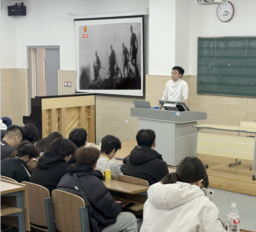 辅导员胡明春组织同学们观看了抗联英雄们的珍贵影像资料和纪录片,用生动的讲述和影像展示,让同学们更加深刻地感受到了抗联英雄们为国家和民族独立所做出的巨大牺牲和贡献。