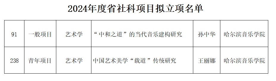 近日,黑龙江省哲学社会科学工作办公室公示《2024年度省社科规划研究项目拟立项名单》,学院获立一般项目1项,青年项目1项。