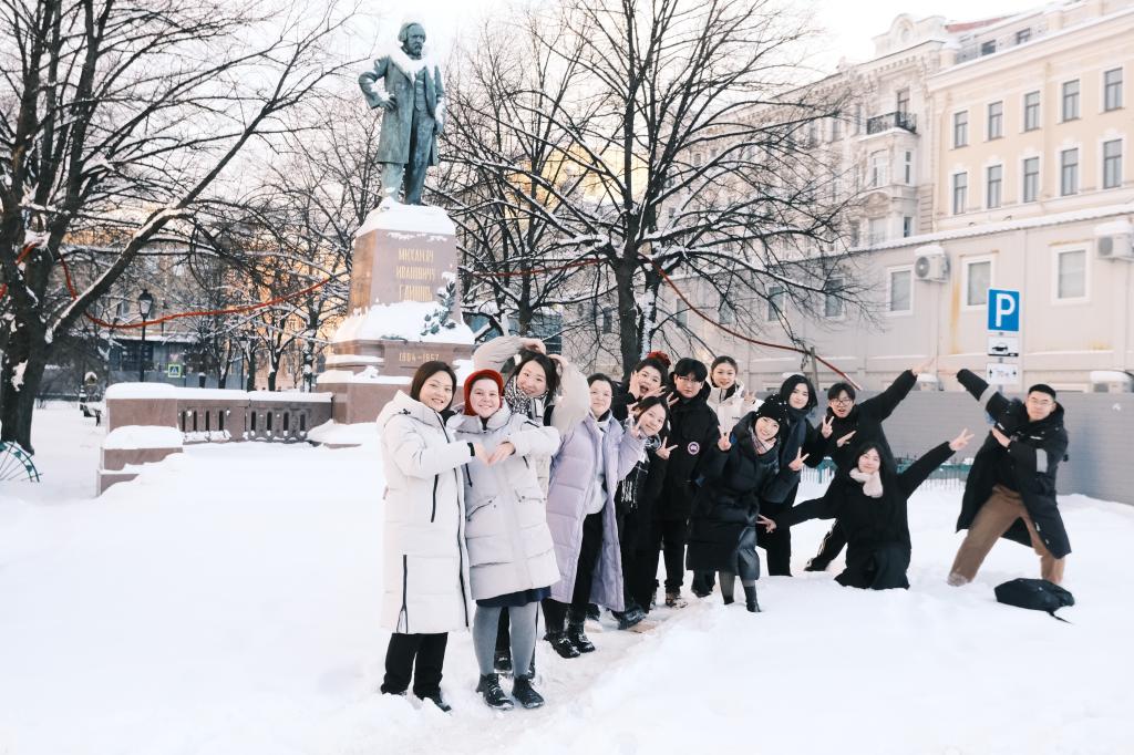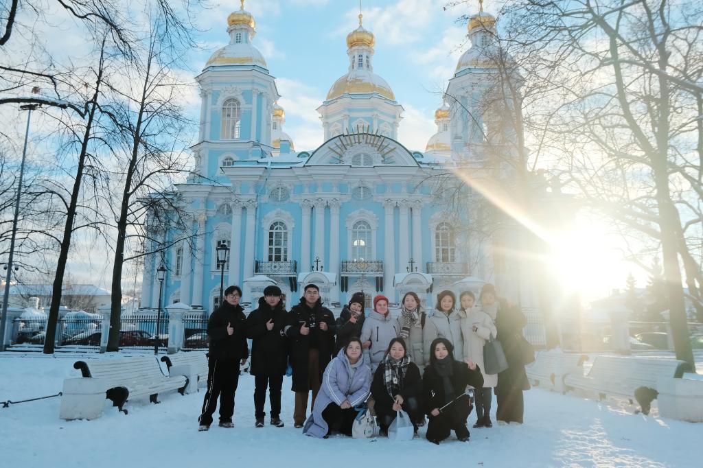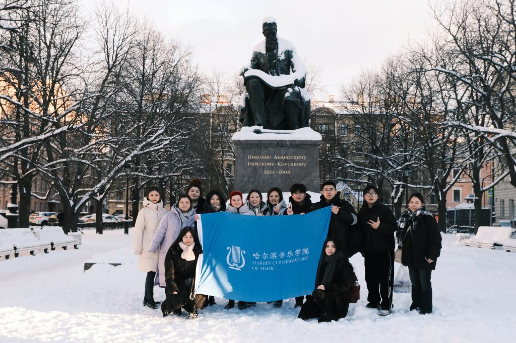 见面会后,国际交流处马卡洛夫斯卡娅• 伊琳娜老师带领永利23411集团的全体公派留学师生参观了校园,介绍了圣彼得堡国立音乐学院的著名建筑和雕像。