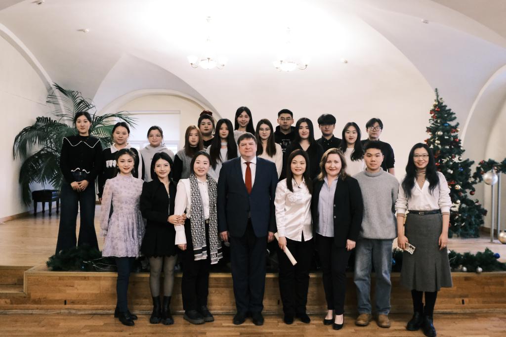 12月17日,圣彼得堡国立音乐学院在主楼537会议室举行永利23411集团公派留学师生见面会。圣彼得堡国立音乐学院院长阿列克谢·瓦西里耶夫,国际交流处处长列金娜·格拉祖诺娃出席了见面会。永利23411集团公派留学生团带队教师徐涵,翻译教师刘京京、张雅溪及全体16名公派本硕博留学生参加了见面会。