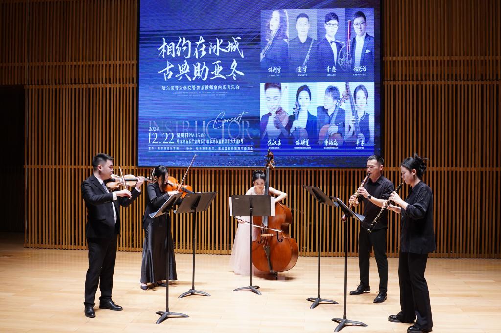 12月22日下午,管弦系青年教师“相约在冰城 古典助亚冬”室内乐专场音乐会在哈尔滨音乐厅室内乐厅成功举办。本次音乐会特别精选了谢尔盖·普罗科菲耶夫的G小调五重奏和路德维希·范·贝多芬的降E大调七重奏两部经典作品,为现场观众呈现一场古典音乐的盛宴。