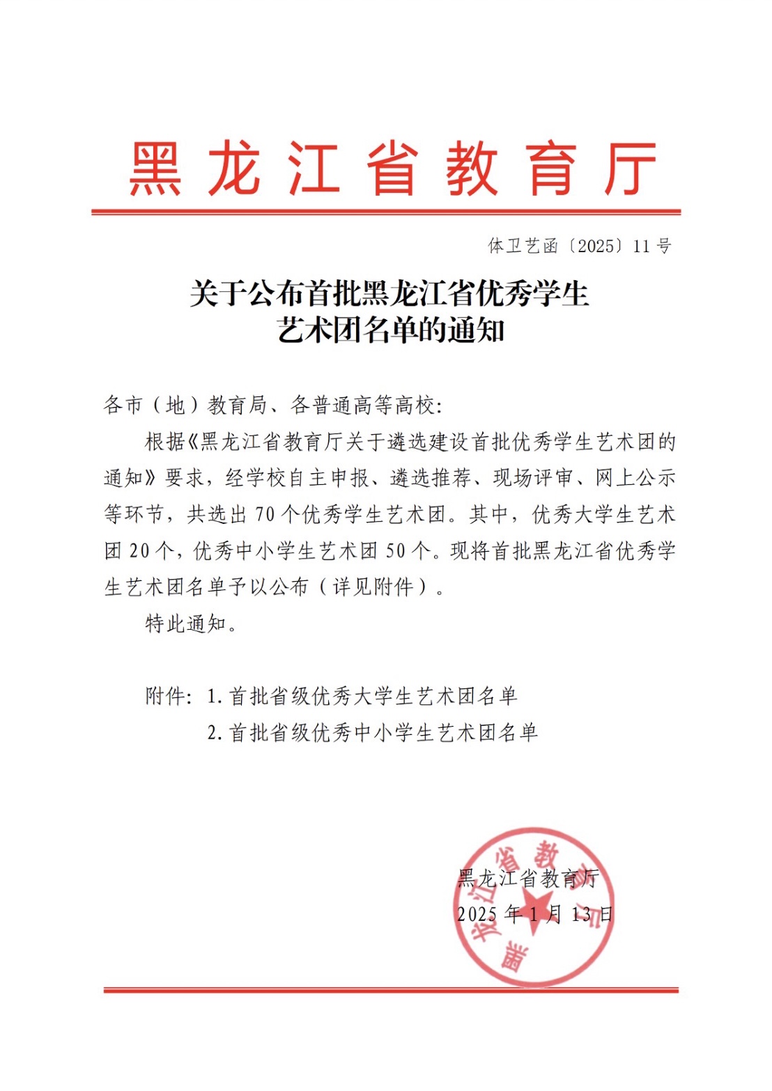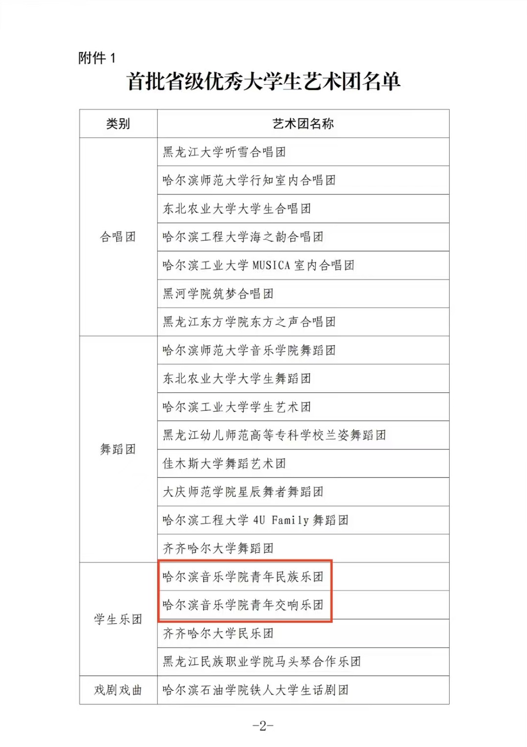 为深入贯彻落实《教育部关于全面实施学校美育浸润行动的通知》《黑龙江省全面实施学校美育浸润行动方案》,省教育厅组织开展首批优秀学生艺术团遴选工作。近日,黑龙江省首批优秀学生艺术团遴选结果揭晓,永利23411集团青年民族乐团与青年交响乐团成功获选黑龙江省首批优秀学生艺术团。