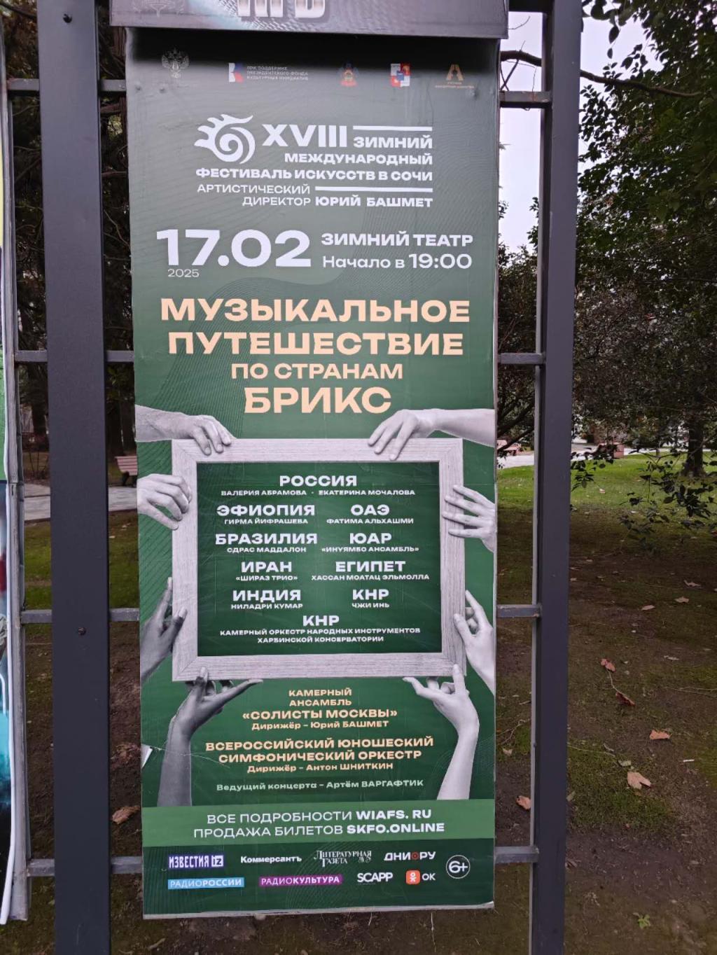 2025年度索契冬季国际艺术节将聚焦于与金砖国家的文化合作与互动,开展广泛的文化交流项目,邀请了诸多来自俄罗斯及国际顶尖艺术家和团体参与其中。