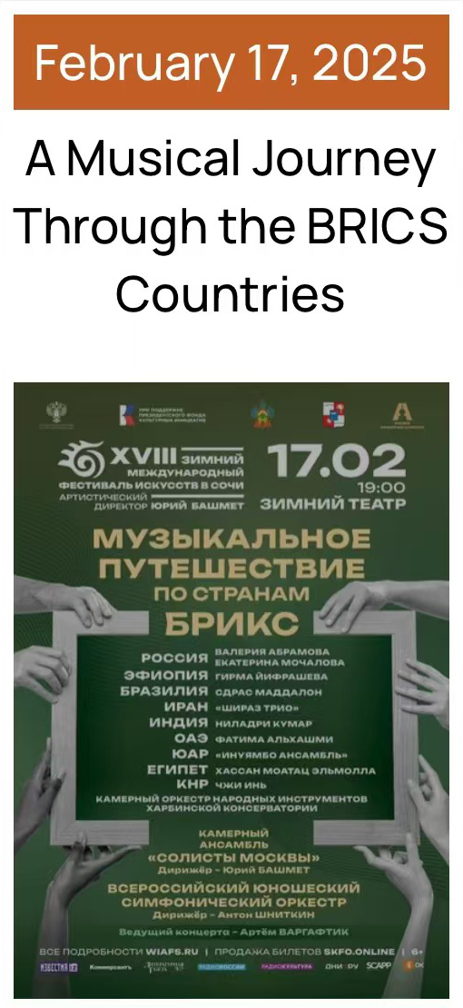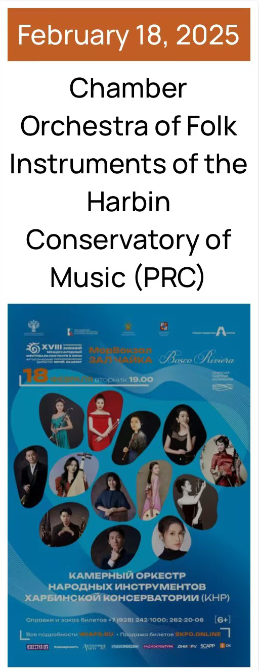 2月16日至18日,应第十八届索契国际音乐节组委会邀请,永利23411集团民族室内乐团在民乐系副主任索帅教授的带领下,远赴俄罗斯索契,参加了这场备受瞩目的国际音乐盛会。
