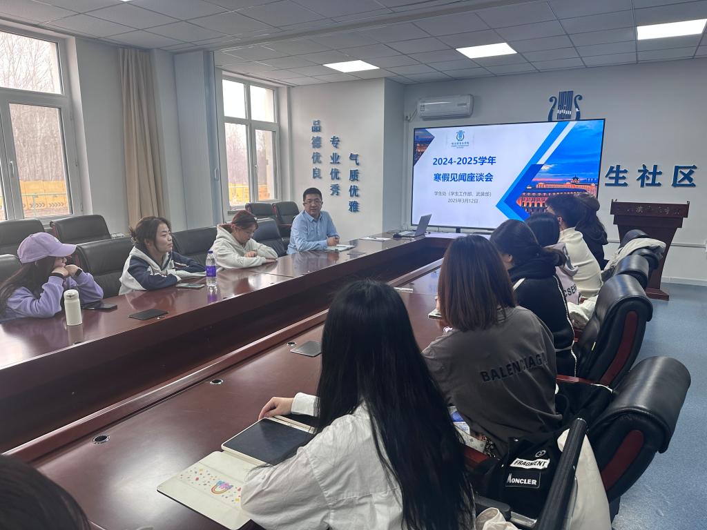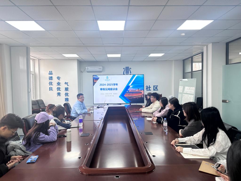 为进一步了解学生假期动态和返校思想情况,深化学院“一站式”学生社区育人实效,学院于3月12日下午召开2024-2025学年学生寒假见闻座谈会。座谈会由学生处(学生工作部、武装部)教师张健群主持,各党总支学生代表参加。