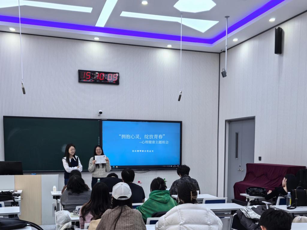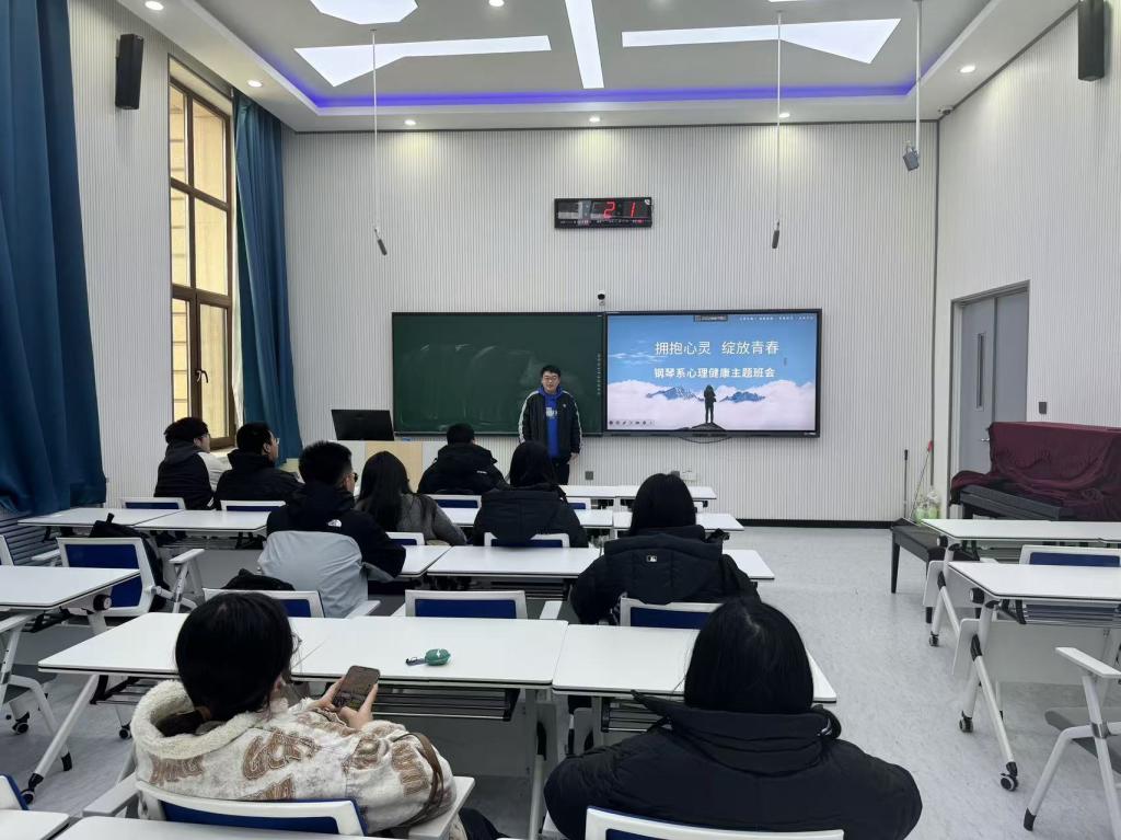 为深入贯彻落实学院心理健康教育工作要求,提高大学生心理健康水平,3月26日,民乐钢琴联合党总支开展了“拥抱心灵,绽放青春”心理健康主题班会,此次班会由辅导员齐道喜、王丹阳、陈怡霖主持。